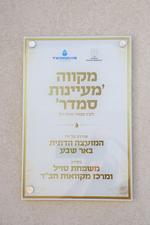 בשכונה החדשה בבאר שבע, בהשתתפות שלוחי הרבי ונציגי המועצה הדתית, נחנך ברוב פאר והדר מקווה טהרה מהודר ומפואר בשיטת חב"ד, שנבנה בליווי הדוק ובסיוע 'מרכז מקוואות חב"ד'